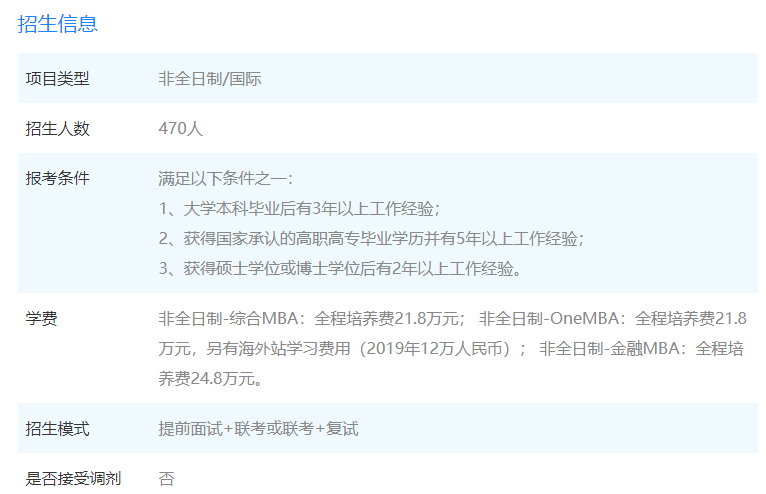 综合MBA(非全日制):25.8万/全程,学制2.5年,分两年缴交;