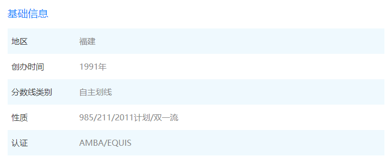 厦门大学是经*学位委员会1991年批准的、首批招收和培养MBA的9所院校之一。厦门大学1921年创建初期,就设立了商科教育,也是中国开展MBA学位教育的先行者之一。1986年,厦门大学成立了国内第一个MBA中心,1987年开始与加拿大达尔豪西大学合作招收了中国第一批MBA学生。厦门大学在MBA学位教育领域中始终保持领先地位。厦门大学MBA教育依托于厦门大学管理学院,2013年国家教育部学科评估中,厦大管院国家一级重点学科工商管理位列全国第三,其中会计、财务管理等专业位居前列,学科优势明显。