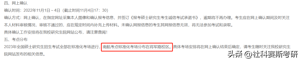 2023年全国硕士研究生招生考试全部在标准化考场进行,南航考点标准化考场分布在将军路校区。