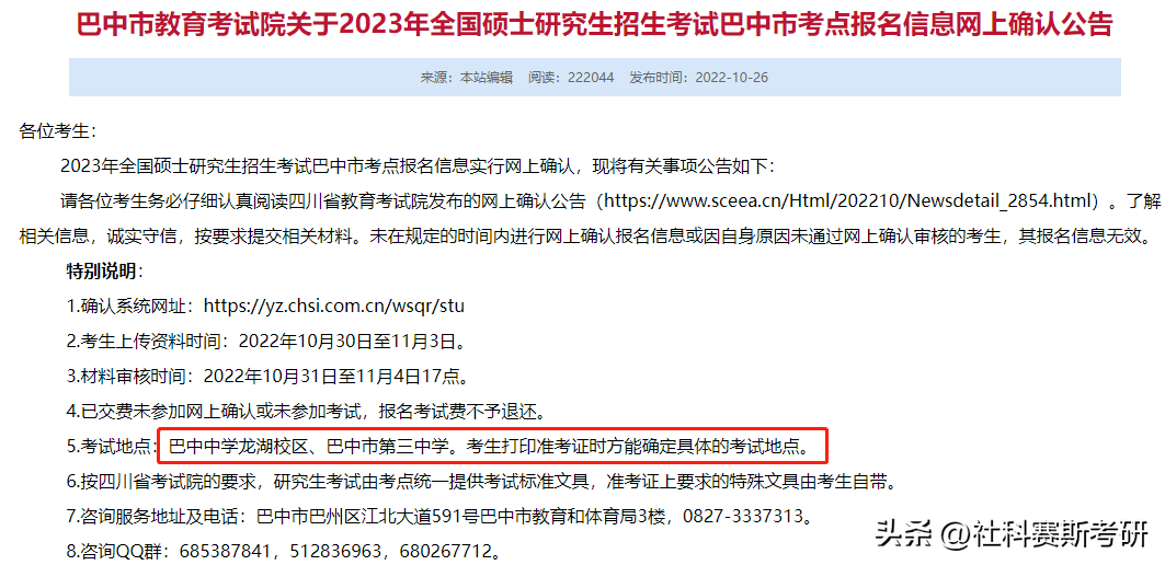 考试地点:巴中中学龙湖校区、巴中市第三中学。