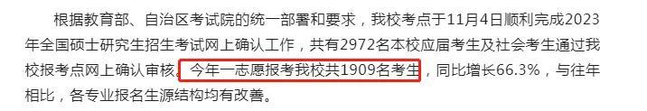 桂林医学院官方公众号发布消息,于11月4日顺利完成2023年全国硕士研究生招生考试网上确认工作,共有2972名本校应届考生及社会考生通过学校报考点网上确认审核。