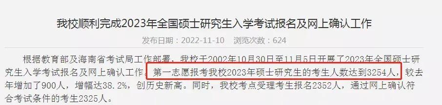 2023年一志愿报考海南医学院的考生人数达到3254人,较去年增加了900人,增幅达38.2%,创历史新高。