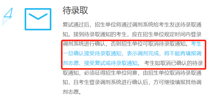 其实对于这个问题,研招网公布的调剂须知里面也提到了。正常来说,调剂接受录取后是不能解除的,实在是想解除的话也必须征得院校同意,按照调剂的正常流程走,即学生联系录取院校——学校同意后解除通知,如果院方不同意则无法解除。换句话说,是否能解除,话语权在于院校。所以,考生们在选择接受待录取通知一定要慎重思考,自己到底要不要最终去这所学校。