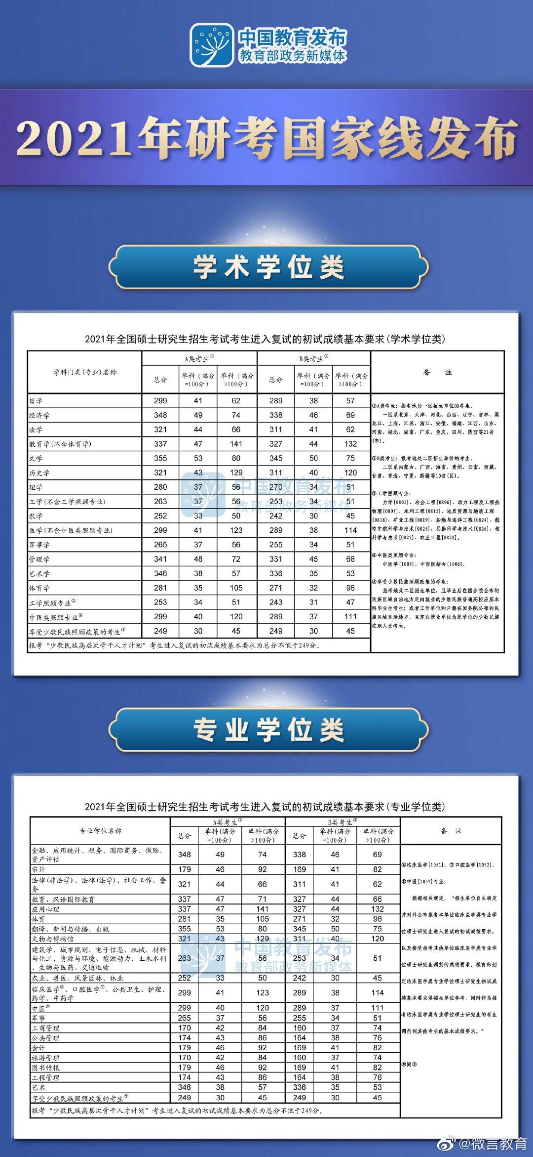 下面来看看官方发布的2022考研国家线(学术学位类、专业学位类)A类、B类总分情况。
