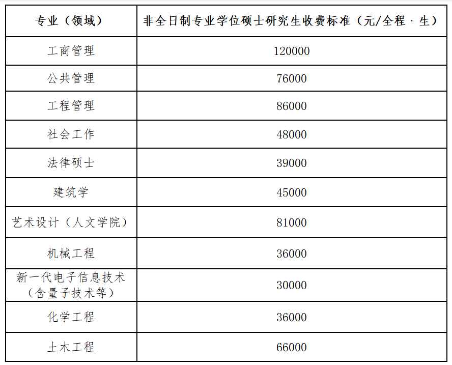 全日制学术学位、专业学位硕士研究生,学费标准均定为8000元/生﹒学年;非全日制专业学位硕士研究生,根据专业(领域)执行不同的学费标准,具体如下: