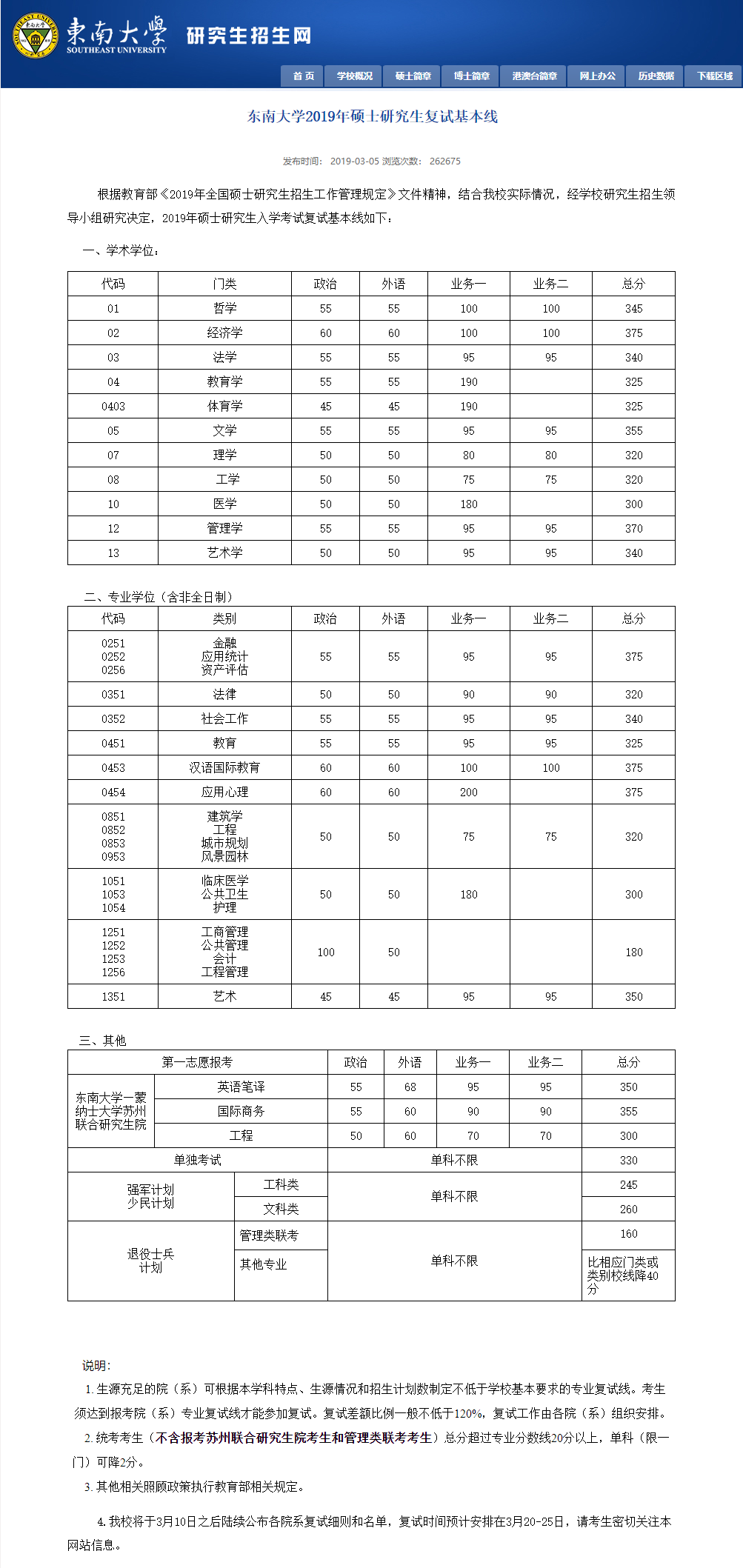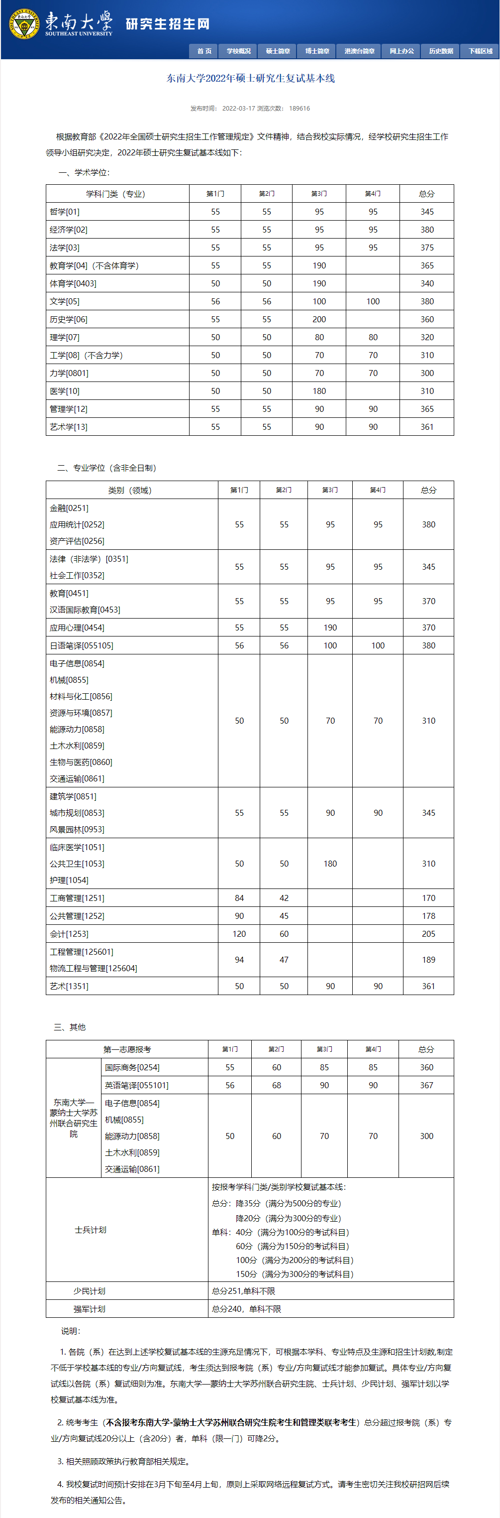 东南大学考研分数线(东南大学近5年硕士研究生入学考试复试线(2018年-2022年))