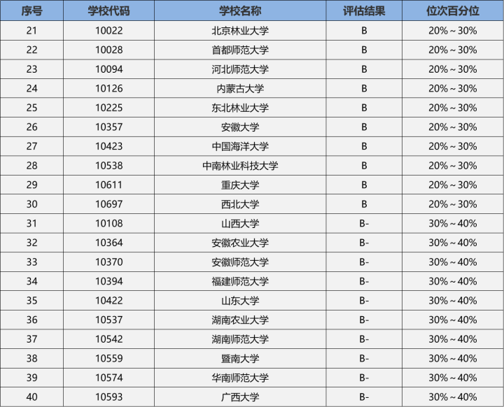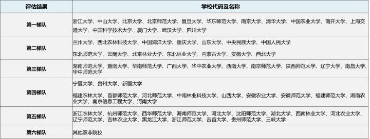 生态学专业院校难度梯队