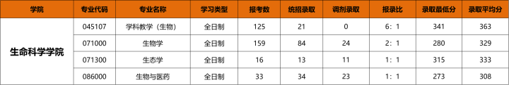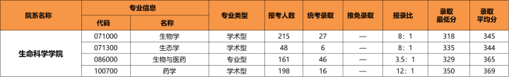 生态学专业录取分析