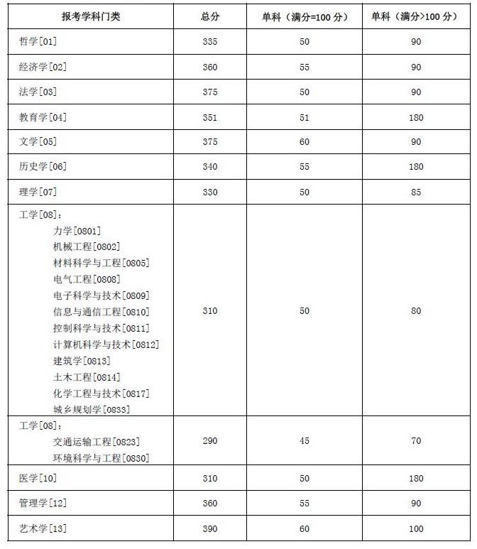 所报考学科初试成绩基本要求的总分线下降20分,单科线下降10分 |