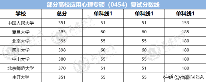再来看几所全国知名大学2022年复试分数线 ,部分院校复试分数线已经飙升到“390+”,对于应用心理学考生来说笔试压力较大: