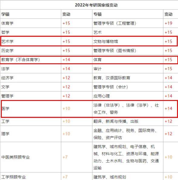 众所周知,初试不过国家线,复试完全没机会,也是告诉考生本次无缘研究生,不仅是教育学分数线暴涨,还有艺术学、医学、法学等学科,涨幅在7分到15分左右。