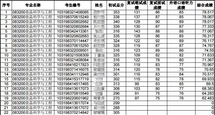 2020年南京师范大学食品科学与工程,一志愿进复试人数有32人,复试线277分,最终拟录取了21人,另录取2名推免,复录比1.5:1,拟录取最高分378,最低分310,平均分332。