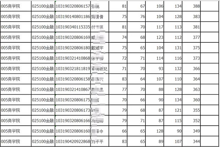 从今年的复试名单来看,录取考生的初试专业课成绩比较高,专业课一的平均分在110+,而专业课二的平均分高达130+。也正因为如此,整体的录取分数水平也是相当高的,近两年的录取平均分都接近390分,最低分也在370左右。