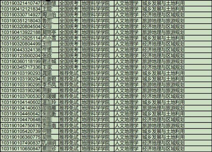 南京师范大学地理科学学院人文地理学2019年拟录取名单>>