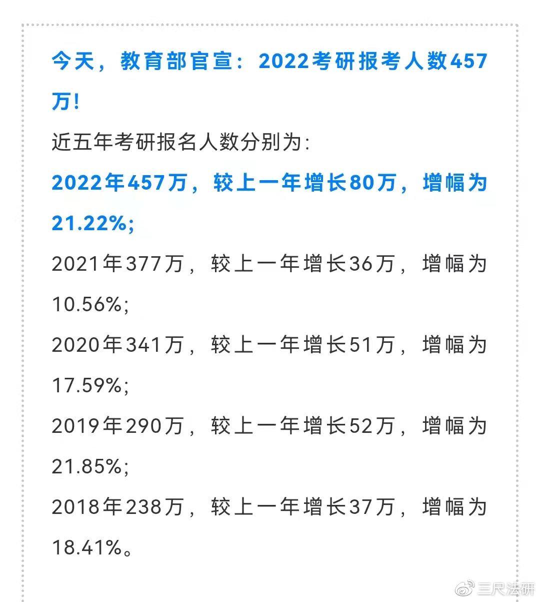 ①2022年全国硕士研究生招生考试全国报考人数为457万;