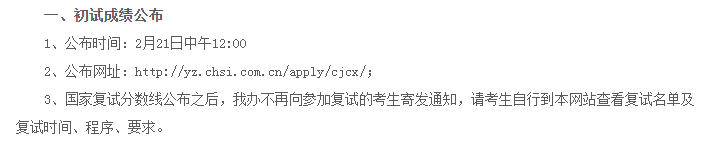 公布网址:“中国研究生招生信息网”的“成绩查询”。(网址:http://yz.chsi.com.cn)