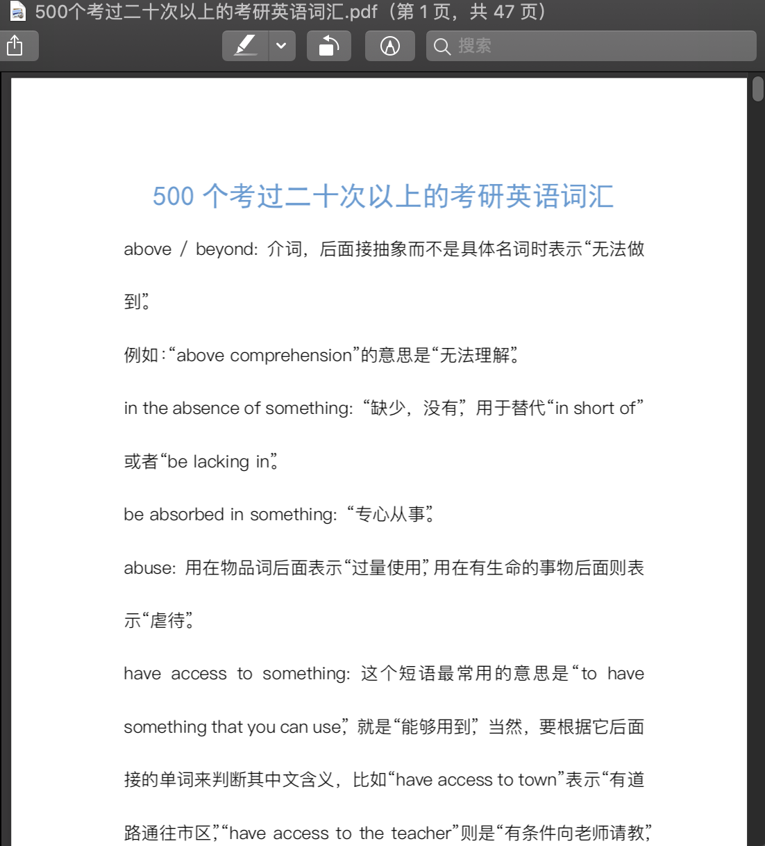 优秀的你,点击右上角*,转发文章后私信回复:“170”,即可获得【500个考过二十次以上的考研英语词汇】源文档。