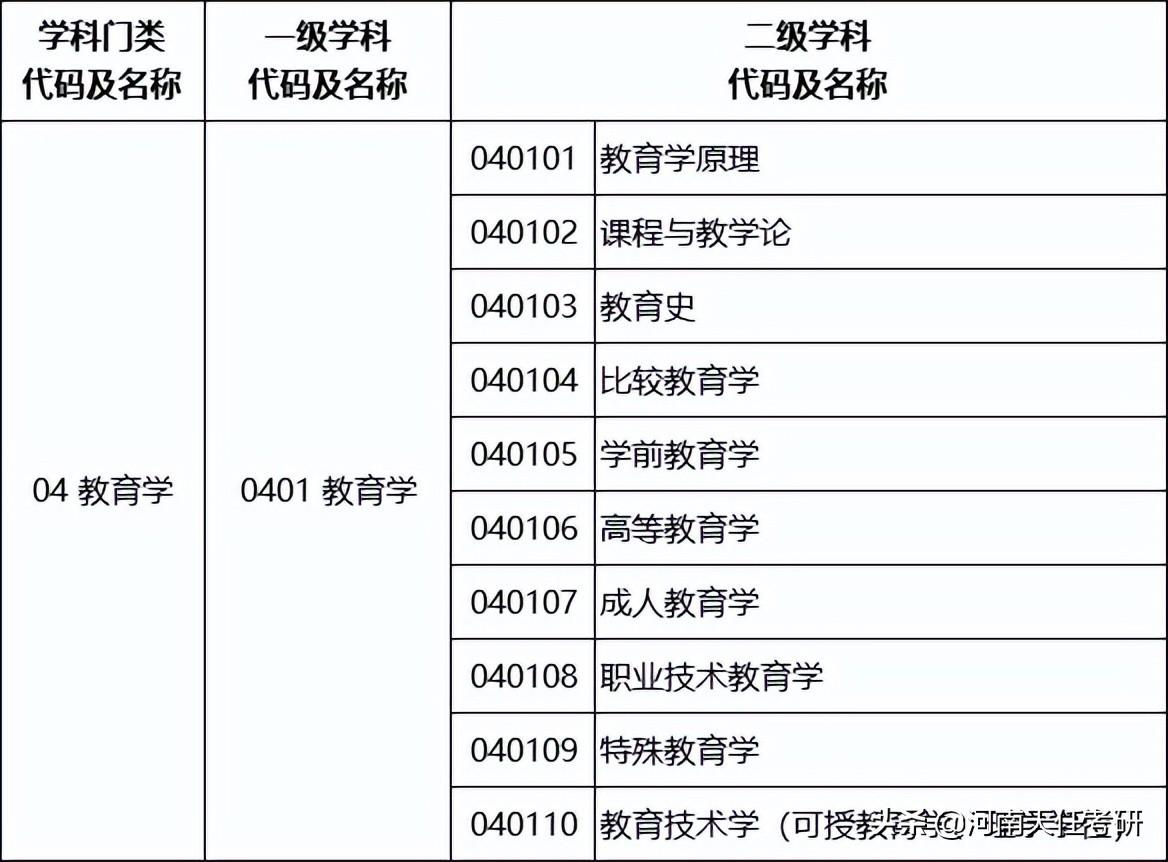 学硕专业:教育学(0401)是教育学(04)下面的一级学科,教育学专业下面一共有10个二级学科: