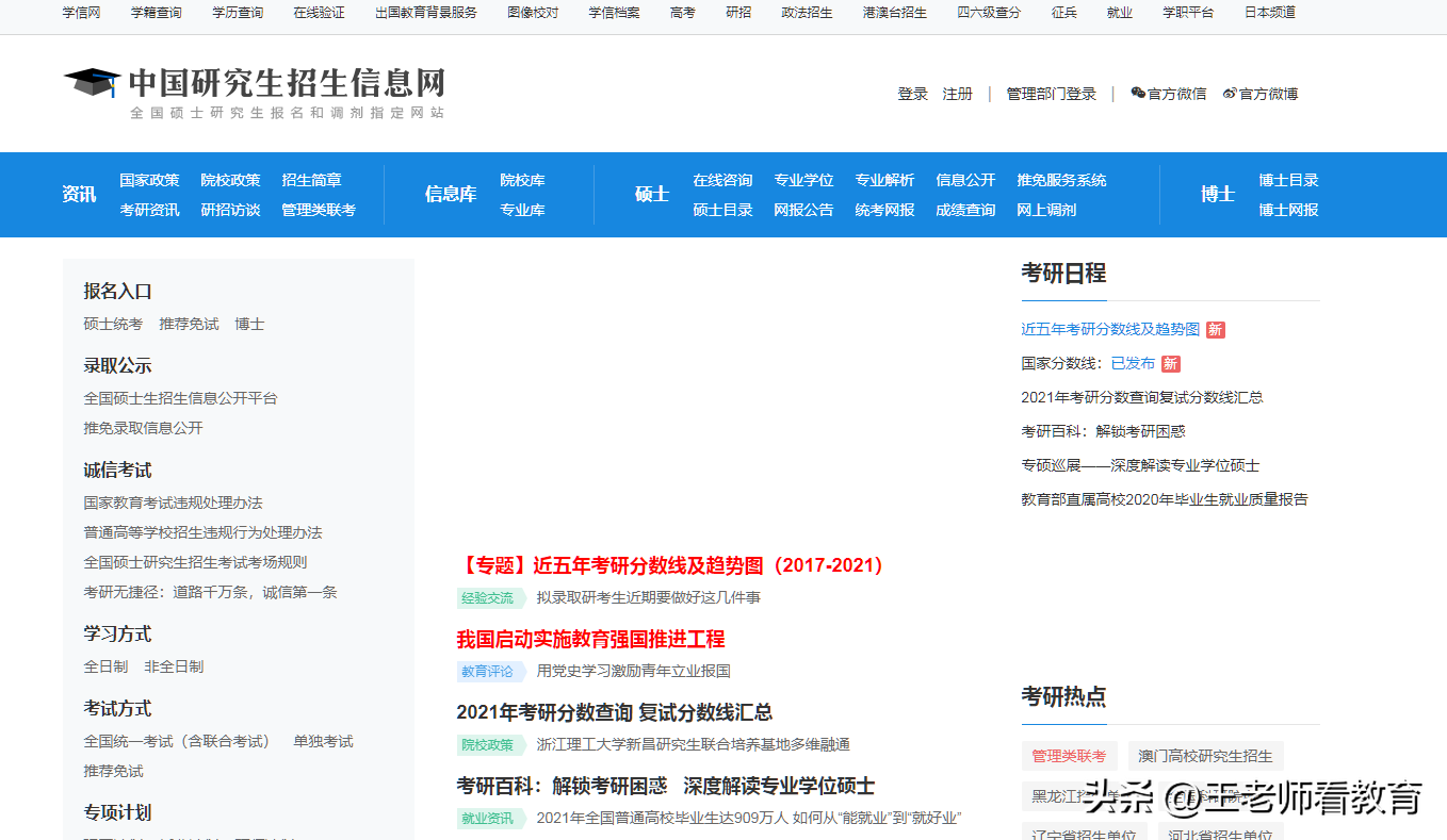 考研的每个时间节点都和它密切关联,包括预报名、报名、现场确认、考试、查成绩、复试、调剂等等,属于考研党最熟悉的一个网站,除了以上常规用途以外,研招网还会有很多资讯及研究生相关基础知识如专业院校之类的信息供大家查阅,应有尽有。