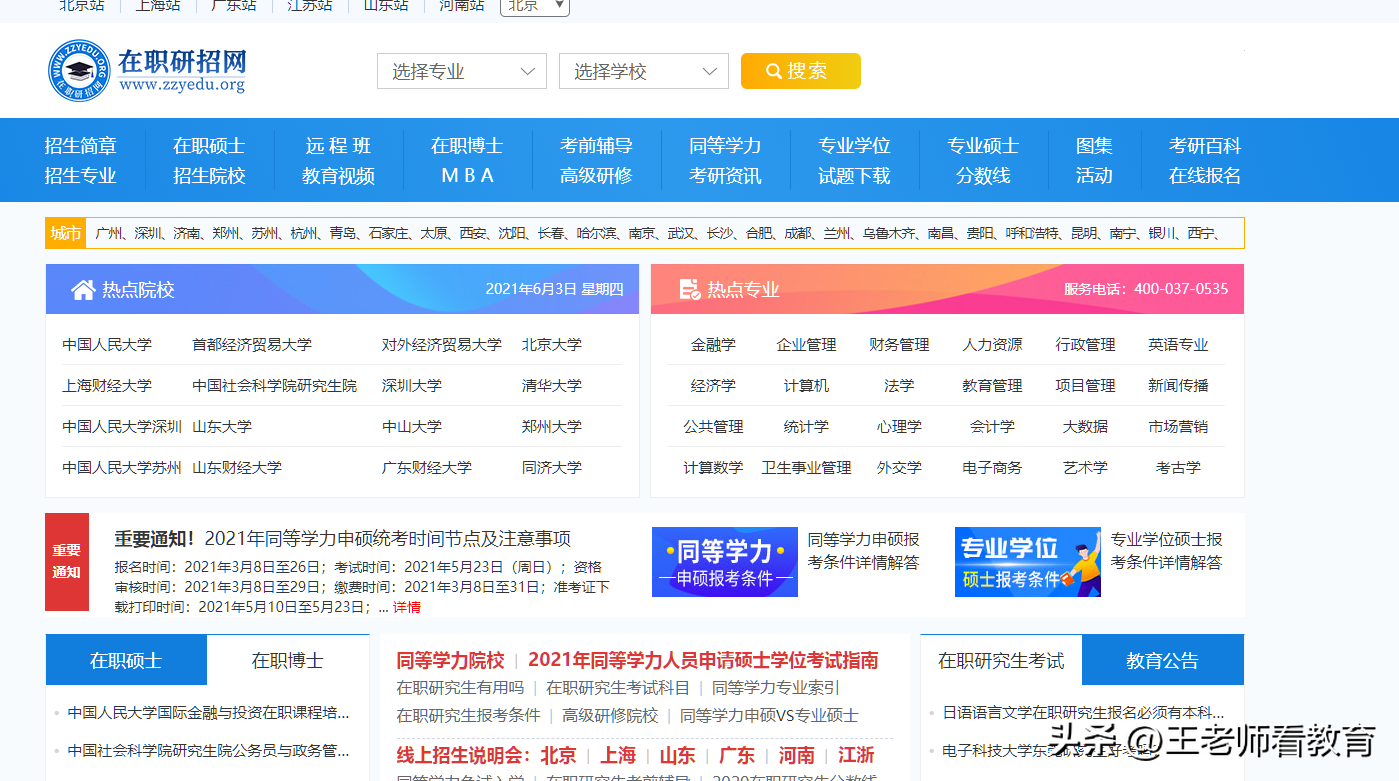 针对“在职研究生”的信息平台,可以查询到招生简章、招生专业、热点院校、热点资讯以及同等学力申硕相关内容,分地区、分院校给大家介绍,对于在职人士来讲是一个非常使用的网站,相对比其他网站,该网站要相对商业化一些。