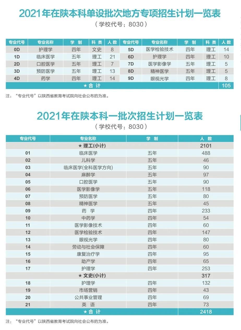 第四条学校设有临床医学院、护理与康复学院、药学院等16个教学单位。开办有研究生教育、普通本科教育和继续教育。普通本科教育开办有临床医学、护理学、药学、预防医学、口腔医学等21个专业。现有“双万计划”国家级一流本科专业建设点1个,省级一流本科专业建设点9个;“双万计划”国家级一流本科课程2门,省级一流本科课程6门;省级“专业综合改革试点项目”3个,省级特色专业3个。学校是国家第一批“卓越医生教育培养计划”项目试点高校和临床医学硕士专业学位研究生培养模式试点高校,2018年学校被陕西省教育厅确定为“一流学院”建设单位。