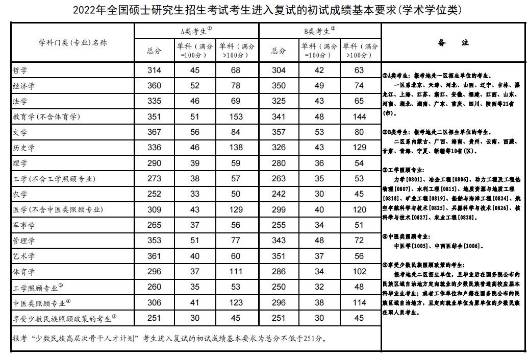 3月26日,湖南师范大学公布了2022年全国硕士研究生招生考试考生进入复试的初试成绩基本要求。