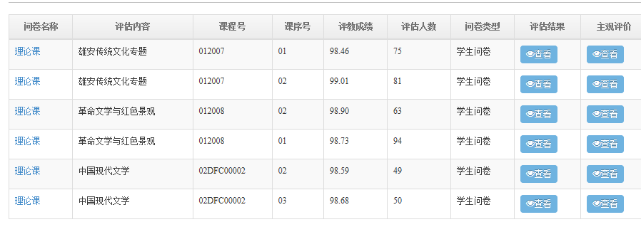 最近一学期学生评教结果统计(2020-2021秋季学期):
