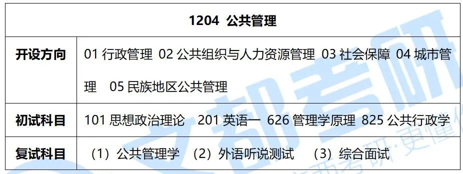 初试科目:101思想政治理论 201英语一 626管理学原理 825公共行政学