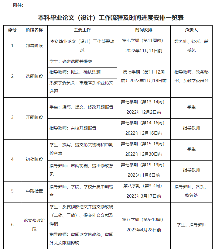 2023年6月18日~6月30日(第八学期第十九周):各系完成论文工作总结、遴选参评省优论文、督导组毕业论文校内抽检工作。