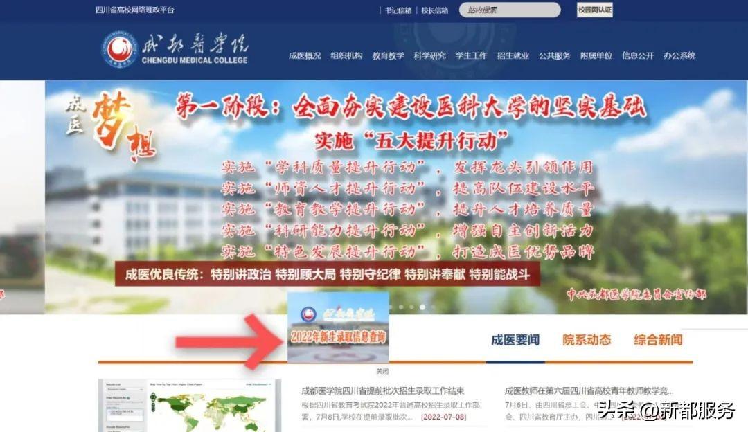 2. 登陆成都医学院首页,进入“2022年新生录取信息查询”平台查询。