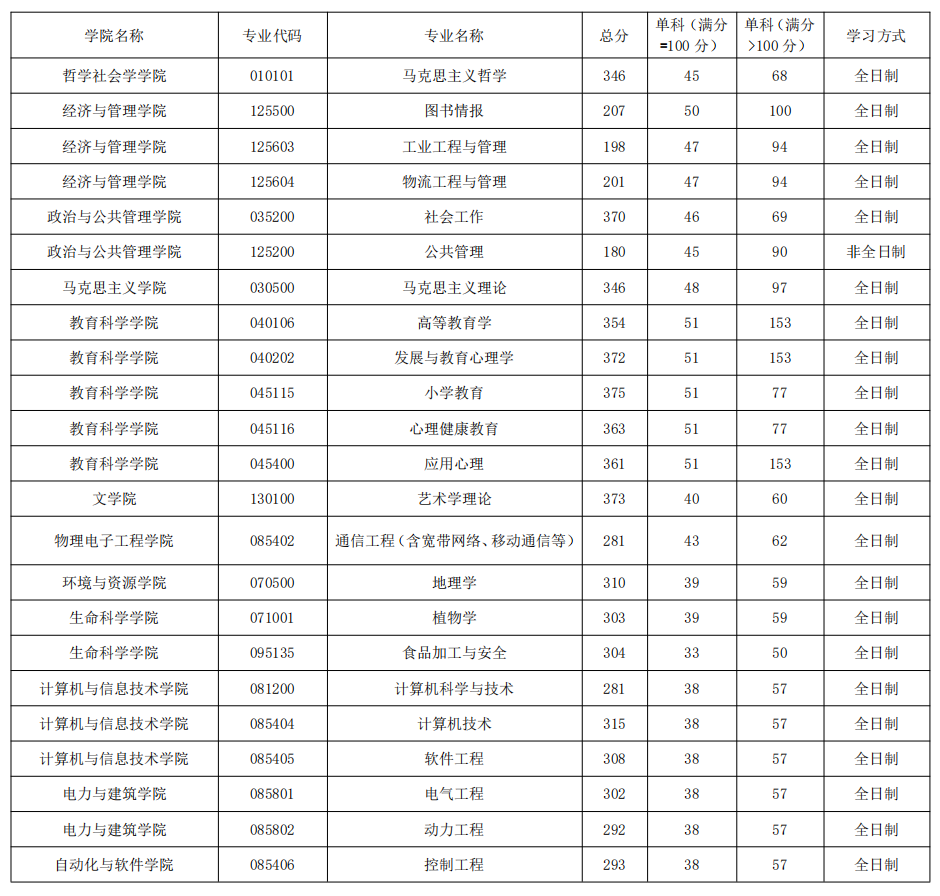 三、报考“退役大学生士兵”专项计划的考生复试分数线:初试科目满分值为500分的招生专业在国家线基础上总分降30分,初试科目满分值为300分的招生专业在国家线基础上总分降10分,单科分数线达到相应学科单科分数线或者不低于40分,其他科目单科分数线达到相应学科单科国家线。