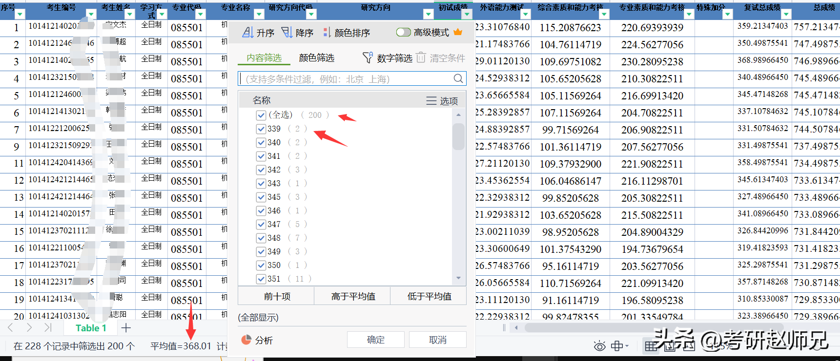 实际录取200人,复试刷掉95人,录取平均分368分。