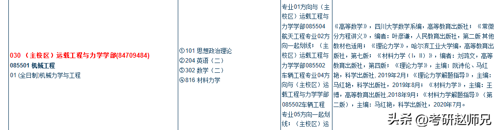 (主校区)运载工程与力学学部:有两个研究方向,专业课考试科目也是不一样的。