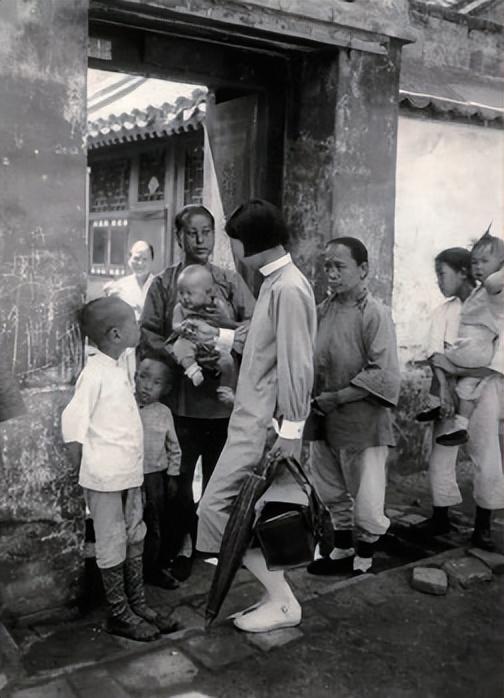 (医学生为河北定县的孩子们接种牛痘疫苗)