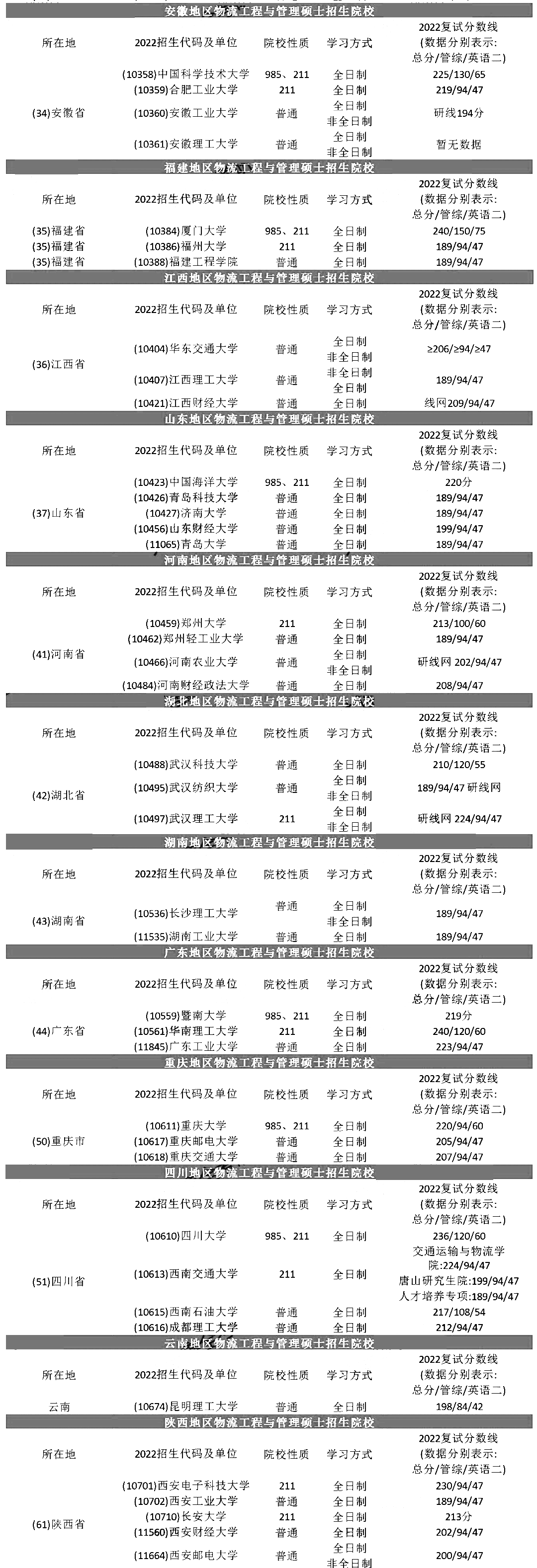 物流工程考研(2022物流工程与管理硕士复试分数线汇总)