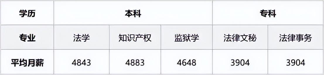 表4 法学类部分专业本科生、专科生毕业0-3年薪资情况