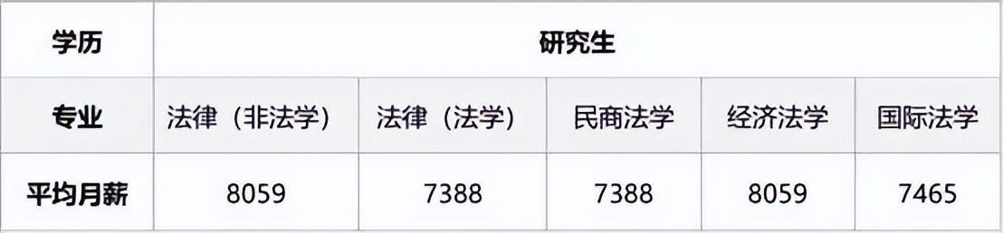 表5 法学类部分专业研究生毕业0-3年薪资情况