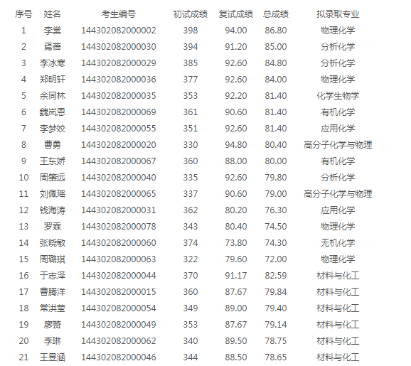 化学学院,高分子化学与物理拟录取2人,材料与化工录取20人,最低274,最高370。