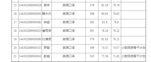 外语系,拟录取21人,英语口语最高402.