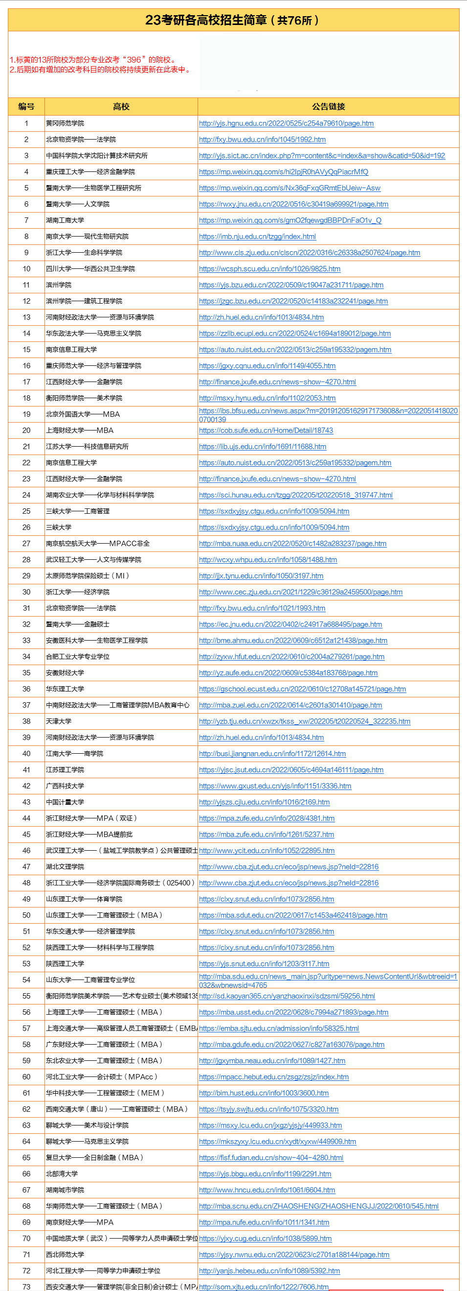 君君注意到,近日又有多所院校公布“23考研招生简章”,算上上次整理的二十余所,截止目前已有76所院校发布招简。