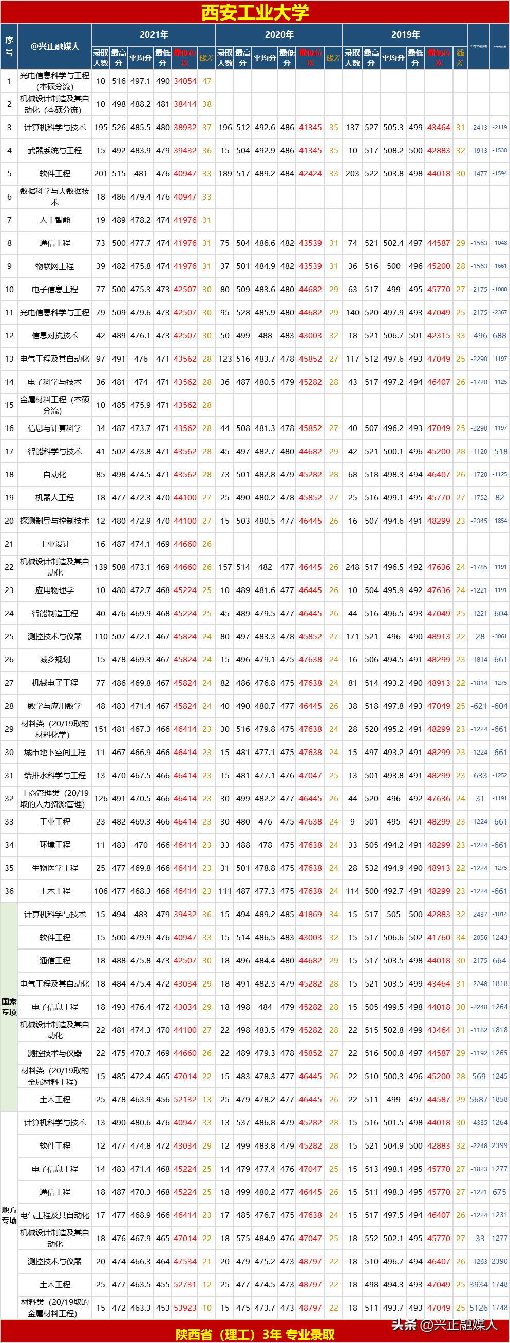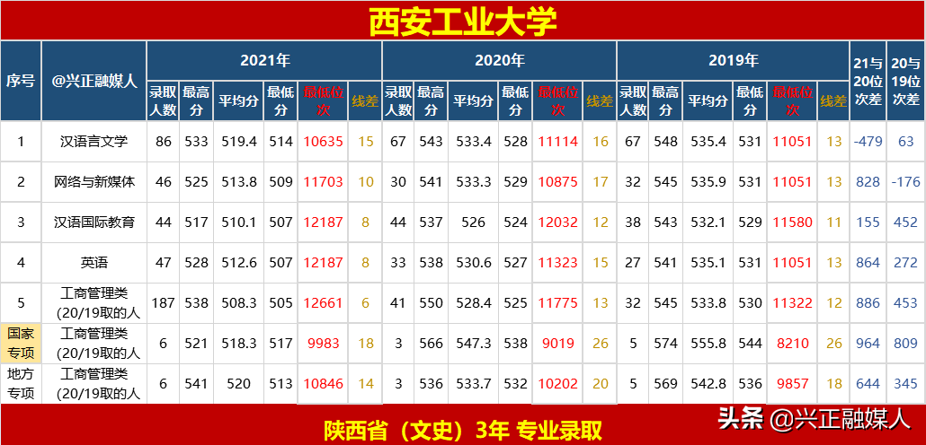 兴正融媒人会结合官方数据,以及收集2021年和以前的高考招生数据,将会陆续统计整理各大学“2021—2019年3年专业录取分、位次”汇总并简单分析,为您和孩子的志愿填报提供参考,让您尽可能填报档次合适的院校与专业,既提高录取的命中率,又为今后走向社会全面发展打下良好的基础。同时,不填报志愿的家长,也希望您对此有所了解!