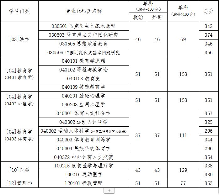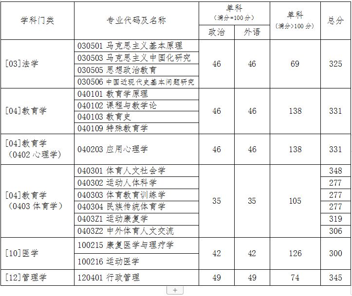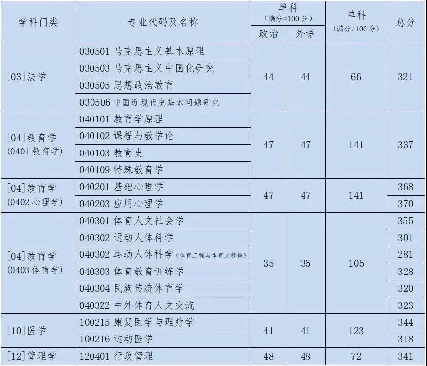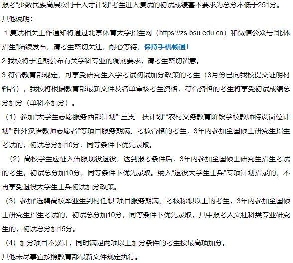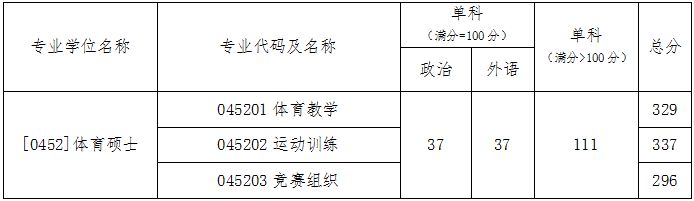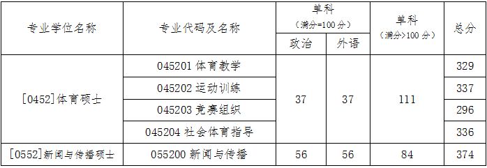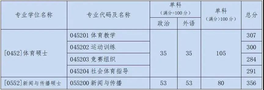 一、北京体育大学2022年硕士研究生招生复试基本分数线要求如下: