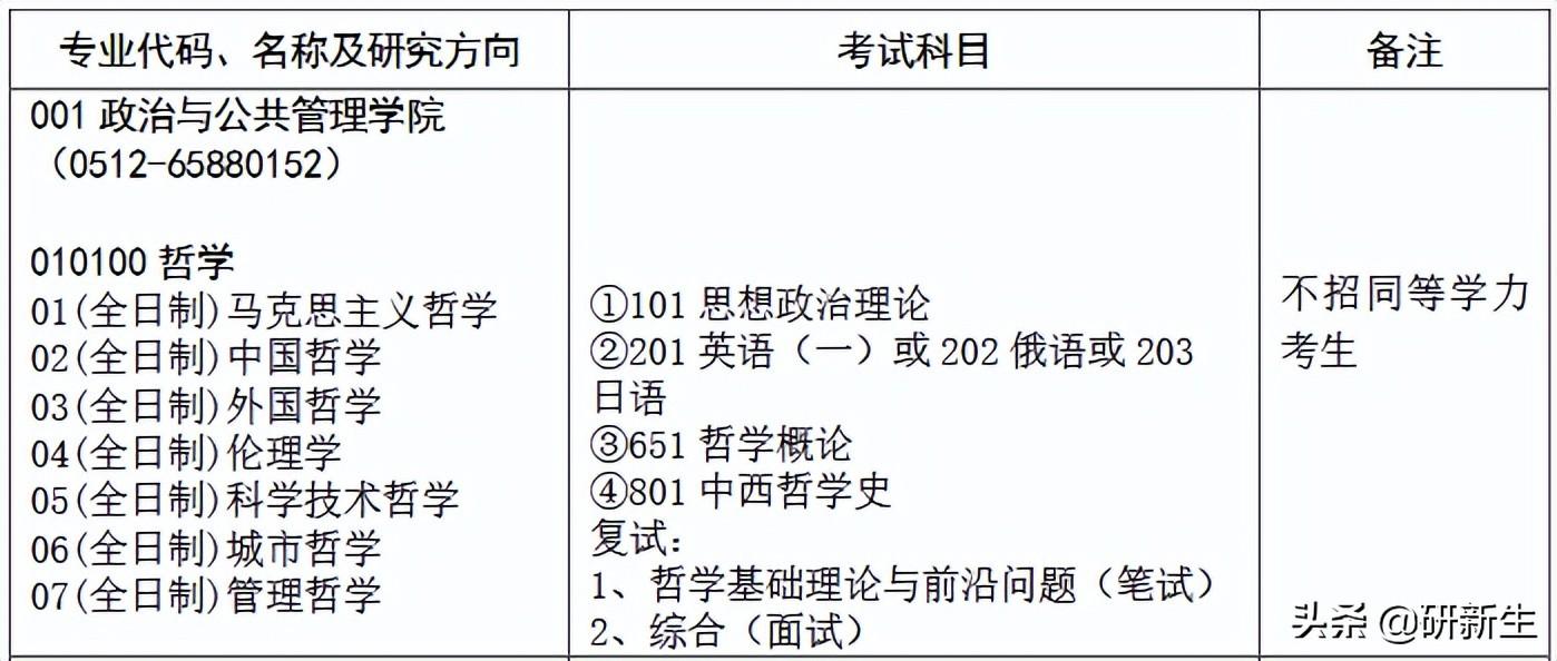 2022年苏州大学政治与公共管理学院010100哲学专业公开招考计划10人(不含推免),苏州大学哲学系下设7个研究方向,分别是01*哲学、02中国哲学、03外国哲学、04伦理学、05科技技术哲学、06城市哲学、07管理哲学。