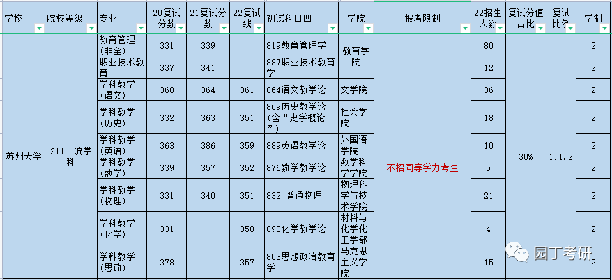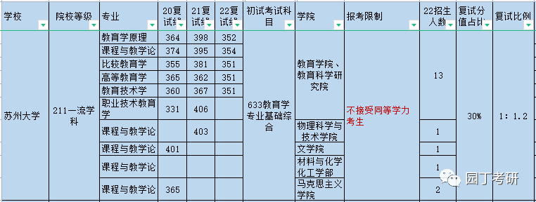 教育管理专业外,苏州大学22教育学各相关专业不接受同等学力考生报考。