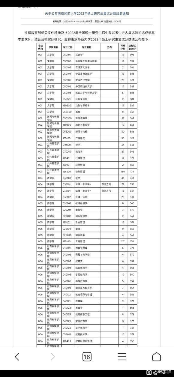 南京师范大学是一所师范类211,地处江苏南京,师范类专业的实力较为强劲,但由于校园风景优美,美女较多,一直受到很多男同学的欢迎。尤其是对于调剂的同学来说,首选南京师大。2022年南京师范大学各学院分数线具体如下: