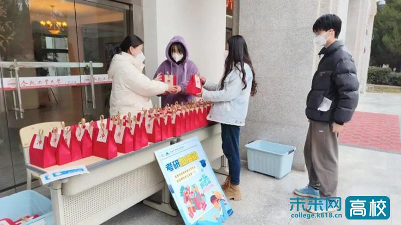 是细心更是真心,是一场必须全力确保的护航。“星光不负考研人,悉心护考踏征程”“战疫考研两不误,师生同心擘未来”……在主教学楼、在学生食堂、在田径场,这些迎风飘扬的标语并不只是响亮的口号,而是全体合肥工大人战胜一切困难,为全体考研学子“如期考试、应考尽考、平安研考”创造条件、提供保障的信心与决心。购置发放防疫物资、落实考生身体健康监测、开辟考生午餐及休息场所、做好阳性考生疏导、招募调度志愿者……这一桩桩、一件件工作看似事小,实则事大,关系到考生能否正常参考以及以最好的精神状态应考。本着“一切为了学生,为了学生的一切”的原则,学校不断细化工作方案,压紧压实职责,明确提醒注意事项,要求事事落细到人,确保考点各项考务和防疫工作万无一失。摸排确定考生类别、设置专用考场、招募专门考场监考教师……正是这一项项具体又琐碎的“细节”,汇聚成全力确保考试的安全屏障。针对这场没有硝烟的特殊大考,学校免费发放安心防疫包、暖心大礼包、爱心用餐卷,全方位用心用情服务学生,为学生加油鼓劲、提振精气神,为学生在人生翻山越岭的重要关口“心无旁骛、努力拼搏”提供最坚强的后盾。