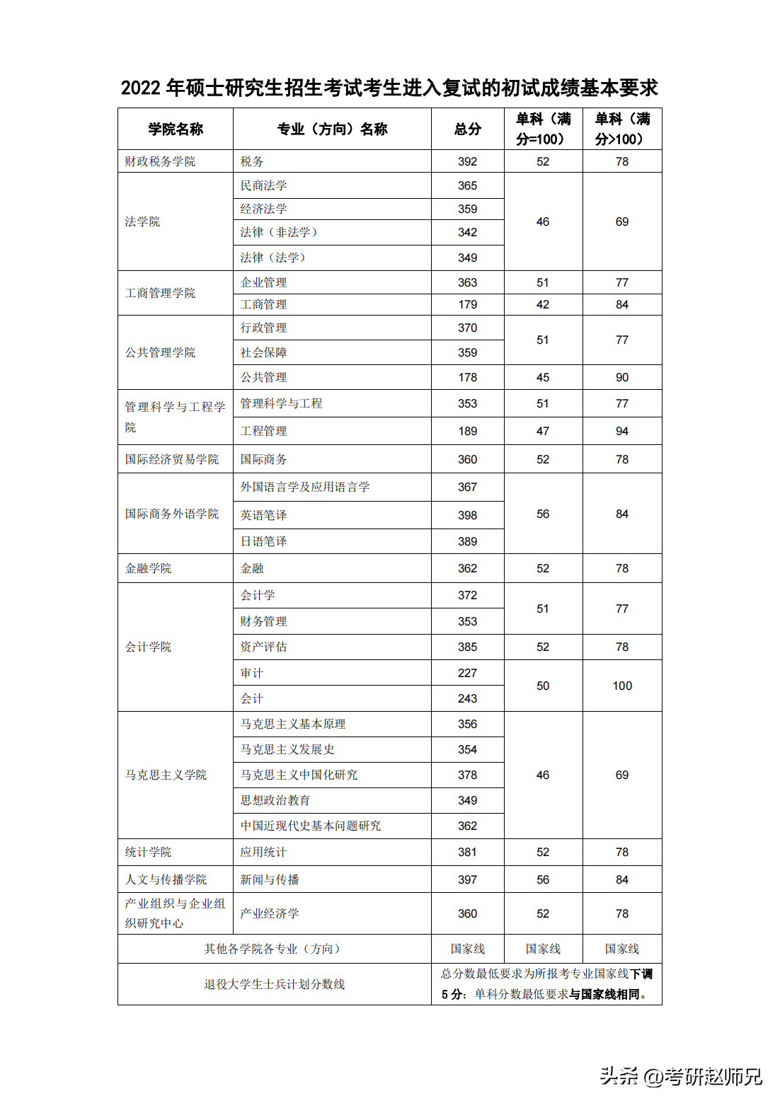 东北财经大学研究生考研分析(22考研各专业的复试分数线)