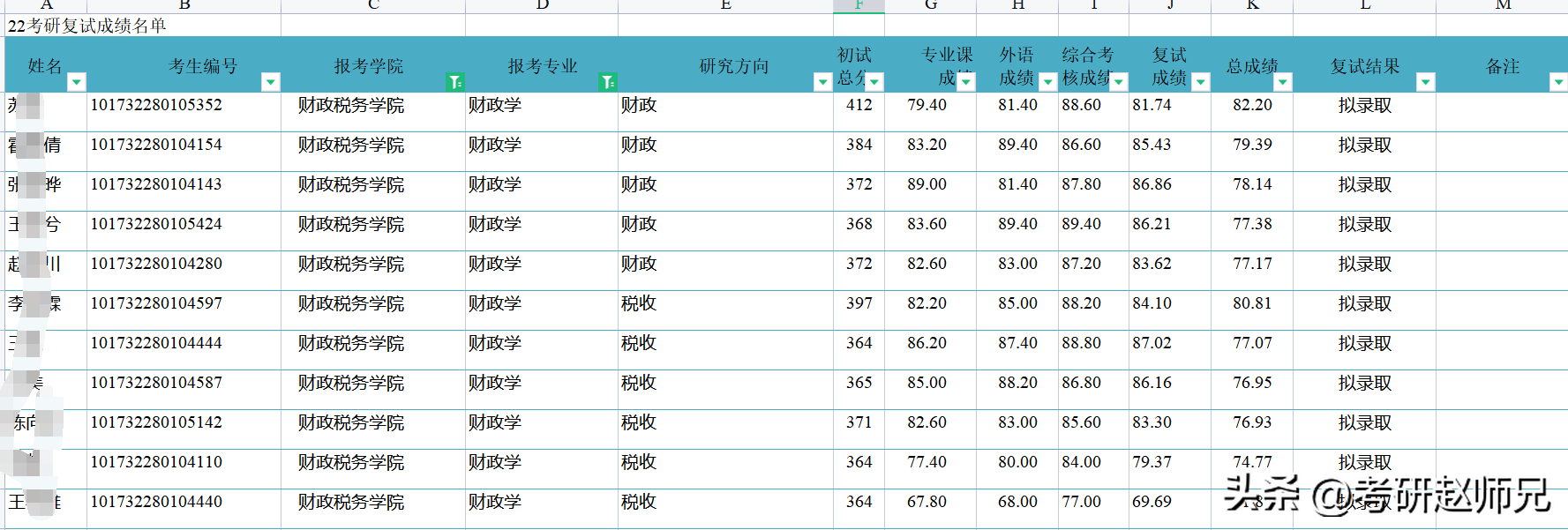 如果说税务硕士太难,那学硕的财政学可以考虑一下,并且研究方向还有税收这个方向,一志愿进入复试11人,一个都没有被刷掉。但是从分数看,确实低了不少,不过要说一点的是,学硕是考英语一,数学三,相对专硕,学习难度是有的,所以大家根据自己的情况综合考虑哦。