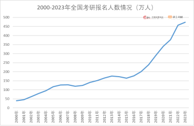 考研“热”持续升温、社会对人才的需求量增加等主客观因素的叠加,近几年的考研人数呈指数级增长,每年的涨幅在30-50万人,而去年报考人数更是创新高,新增近80万人报考。然而今年的结果有点出乎意料,据中国教育在线统计,23考研报名人数仅比22考研增长17万人,与22考研的增幅相比下降许多。
