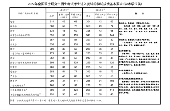 考研国家线是教育部依据硕士生培养目标,结合年度招生计划、生源情况及总体初试成绩情况,确定报考统考、MBA及法律硕士专业学位考生进入复试的基本要求标准,其中包括应试科目总分要求和单科分数要求;对应届本科毕业生和非应届毕业生实行统一的进入复试基本分数要求。(注:这个分数线很重要,只有过了国家线才可能被录取或者调剂)